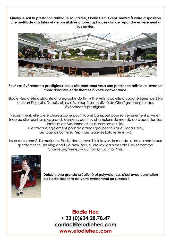 CHOREGRAPHE - CHANTEUSE - METTEUR EN SCENE